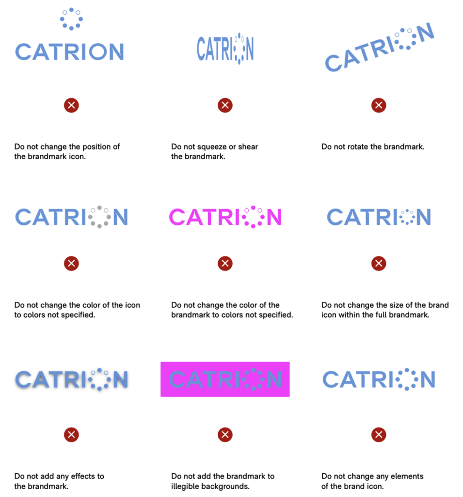 The primary color palette reflects the brand’s vision of reliability, trust and innovation as CATRION grows and propels forward. The selection of blue is refreshing, confident and contemporary allowing the brand to be distinguishable and memorable to a global target audience. Paired with black and white, the combination of colors is vibrant and energetic, creating a modern and sophisticated look and feel.