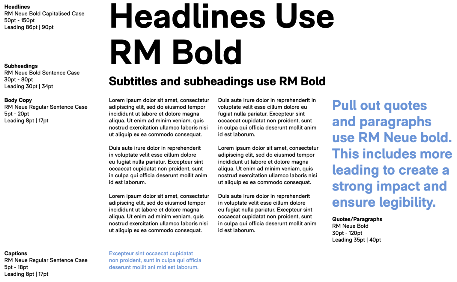 RM Neue is a typeface characterized by its compact proportions and low-contrast design. This combination gives it a sense of instant familiarity while avoiding a sterile appearance often associated with grotesque designs. By striking this balance, our font demonstrates a clear commitment to care, presenting a design that feels approachable and welcoming.