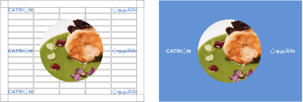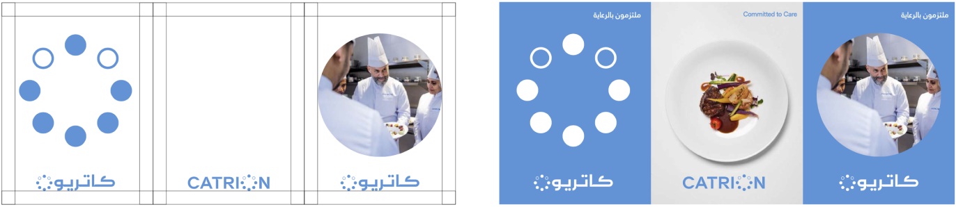 The Arabic and English brandmarks can also coexist in the same composition in different sections. This will be presented through different panels of solid color or photography.