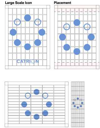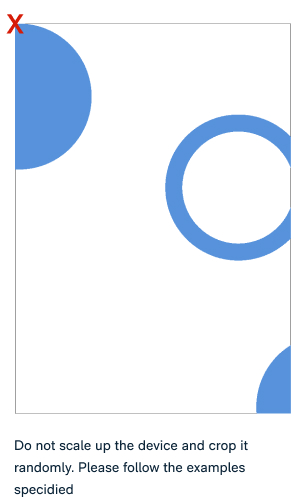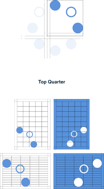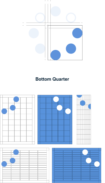 The quarter icon will be cropped and positioned to align to the edge and base of any composition. This can be aligned to the edge of the left or right and bottom of the page. Ensure that it is not cropped beyond the example demonstrated. For extreme narrow formats, the device will be aligned to the edge of the composition.