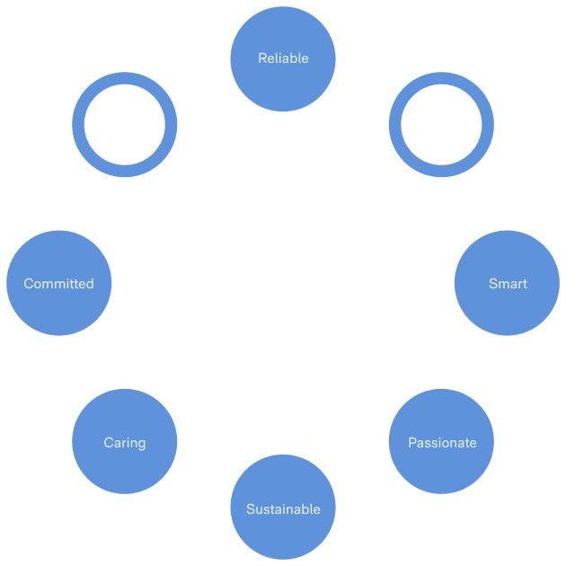 We have crafted bespoke elements that serve as visual representations of our brand values. Each value is assigned its own distinctive element, which can be utilized to communicate and highlight specific values during events or campaigns. These special use marks are exclusively reserved for use as icons and are not to be incorporated into the word mark.