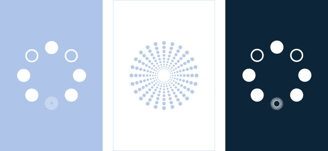 Taking inspiration from the icon, the secondary cropped graphic device will feature three solid circles presented with 70% opacity. This will only use the pistachio and sea blue color at all times.