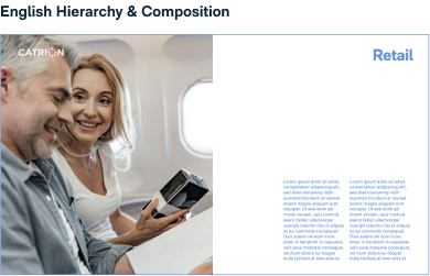 The following examples depict how we utilize the relationship of type in different languages. The following examples showcase how the hierarchy and composition is applied to single language and dual language formats and how it functions with imagery, graphic elements, and the brandmark lockups.